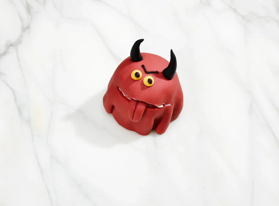 Den klassiske kajkage i djævle-look, bagt med smil og lidt horn.