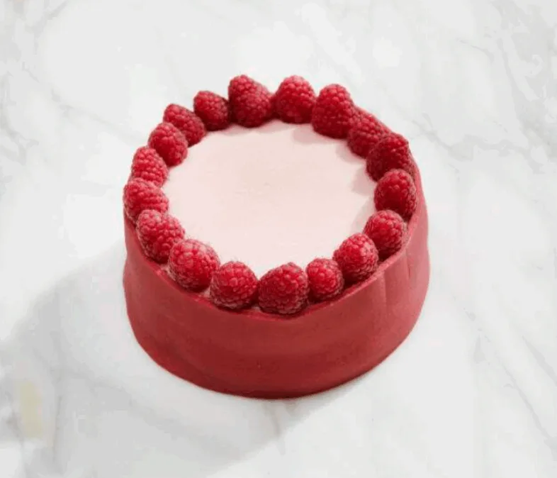 Vores Sommer Othello er bagt på bløde vaniljebunde smurt med hjemmelavet hindbærmarmelade, toppet med flødecreme og hindbærmousse. Pyntet med marcipan, friske bær og et tyndt lag gelé – præcis som vi selv ville servere den for familien.